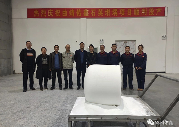 2019年11月1日曲靖開發(fā)區(qū)佑鑫石英有限公司年產(chǎn)六萬只石英坩堝項目建成投產(chǎn),佑鑫石英標志著佑鑫公司在產(chǎn)品結(jié)構(gòu)和產(chǎn)品質(zhì)量提升方面又跨上了一個新臺階。在集團領(lǐng)導、公司總經(jīng)理及各部門同事的共同見證下,曲靖佑鑫公司第一只石英坩堝順利出爐!